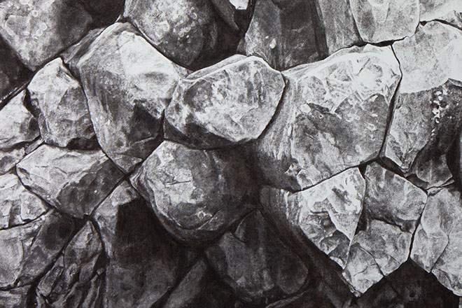 The basalt series is an exploration into making photographs that have the somatic presence of sculpture. Instead of acting as "windows" they seek to intrude into the viewers space. All works charcoal on paper.